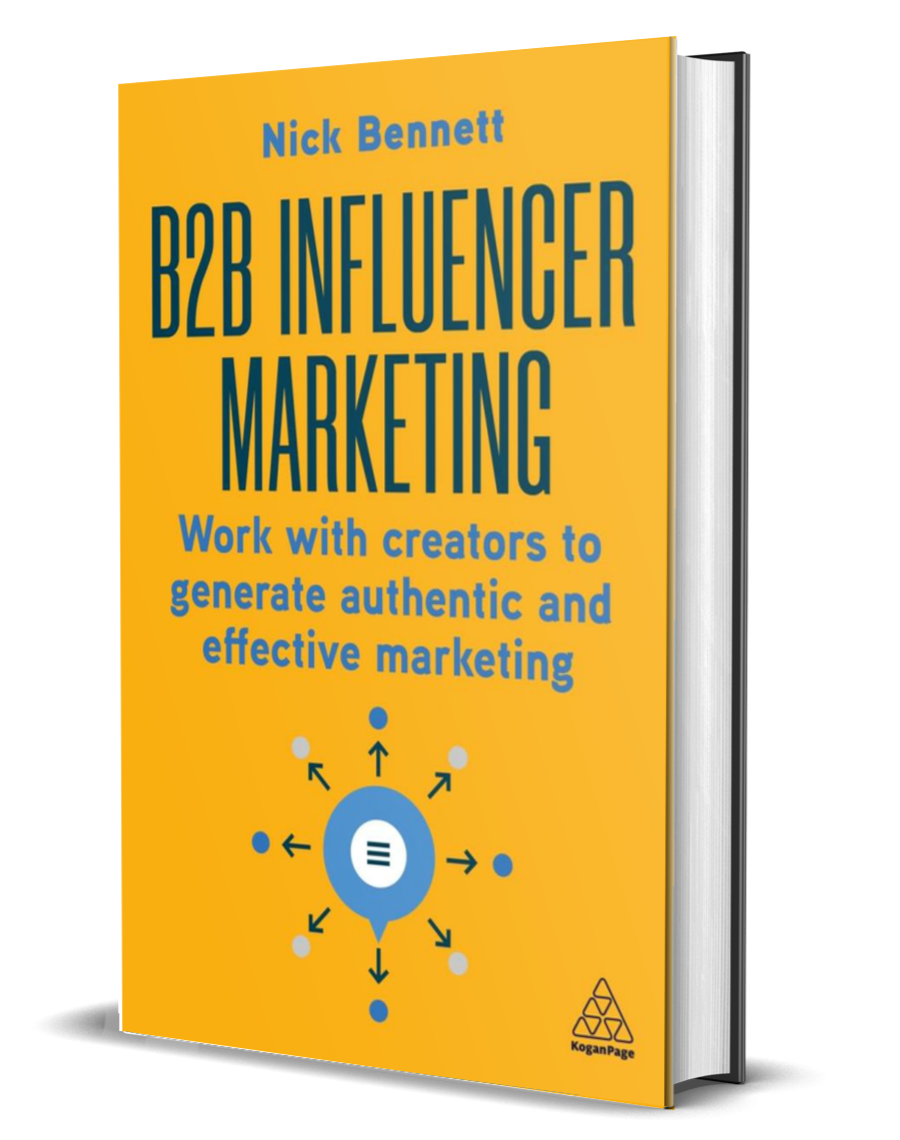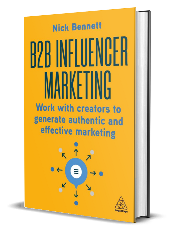 "Nick delivers a clear and practical roadmap for navigating the evolving world of B2B influencer marketing. His approach balances authenticity with strategy, showing how creators can drive meaningful engagement without sacrificing trust. This book is a valuable resource for any marketer looking to build genuine relationships that deliver real results."Vahbiz Cooper, Digital Marketing, Demandbase